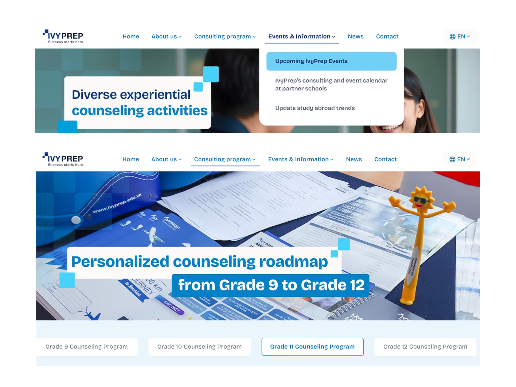 After more than two decades of growth, IvyPrep's digital presentation no longer matched current student expectations: formal, fragmented, and difficult to navigate across website and supporting channels.
